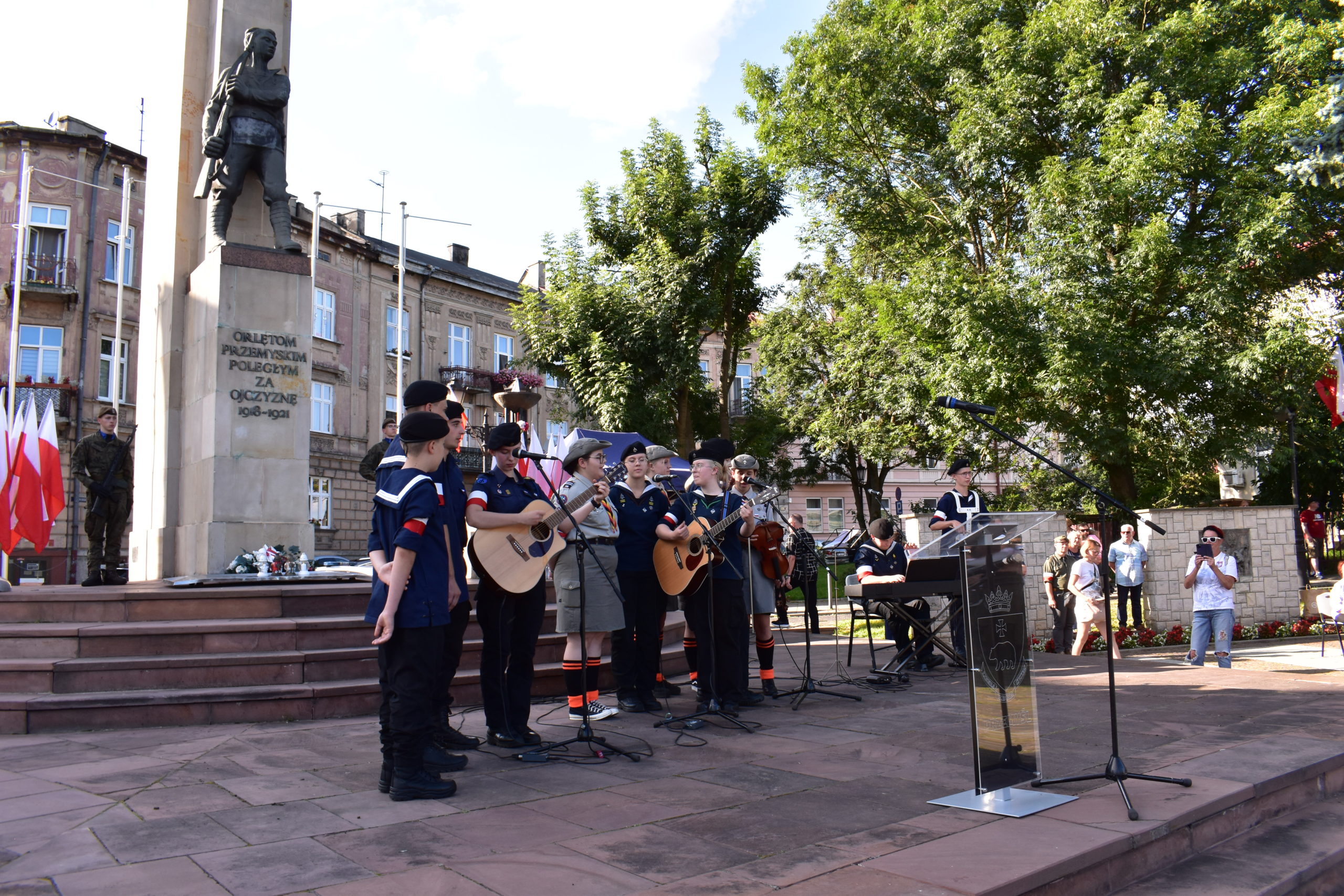 w kościele pw. Św. Trójcy. Następnie uczestnicy wydarzenia przeszli pod pomnik Orląt Przemyskich, gdzie rozpoczęła się główna część uroczystości z udziałem Kompanii Honorowej Wojska Polskiego, harcerzy i licznych pocztów sztandarowych.