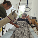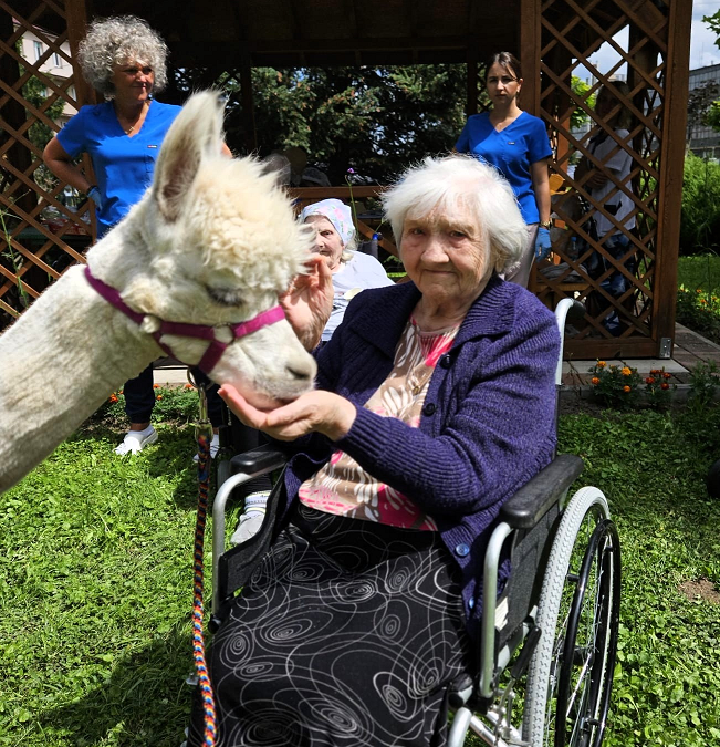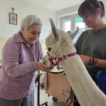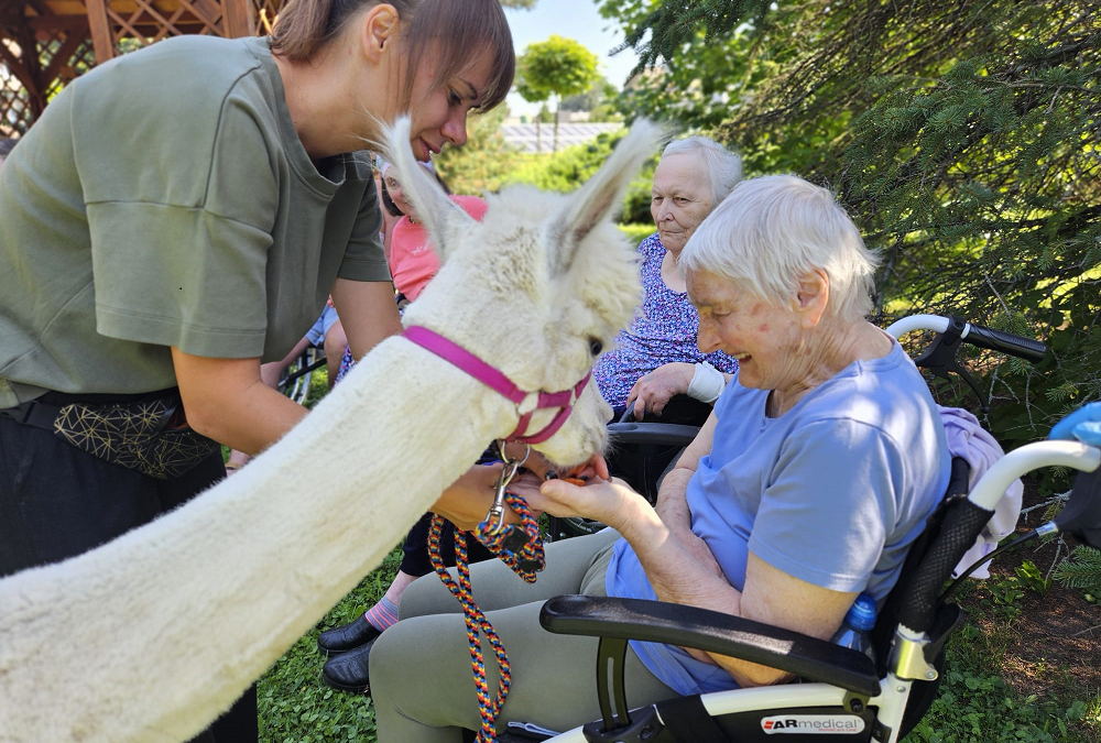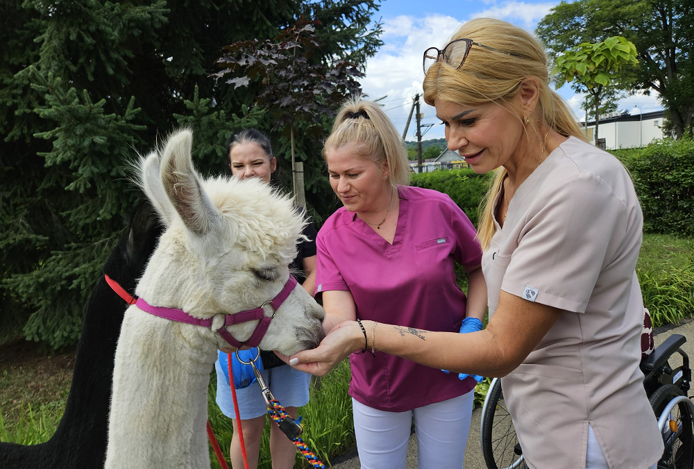 Wizyta tych sympatycznych gości wywołała na twarzach podopiecznych ogromną radość i wzruszenie. Spotkanie z alpakami to nie tylko miłe przeżycie, ale również forma terapii – tzw. alpakoterapia, która staje się coraz popularniejsza w placówkach opieki i rehabilitacji. Kontakt ze zwierzętami działa kojąco, poprawia nastrój i ma pozytywny wpływ na funkcjonowanie emocjonalne i psychiczne, a także wspomaga rehabilitację ruchową.