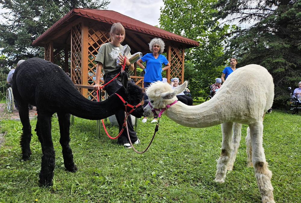 W dniu 1 sierpnia br. w Zakładzie Opiekuńczo-Leczniczym w Przemyślu odbyło się niezwykłe wydarzenie, które na długo pozostanie w pamięci pacjentów. Odwiedziły ich dwie wyjątkowe alpaki – Hugo i Louis – miękkie, puszyste, a przede wszystkim przyjazne i łagodne zwierzęta.