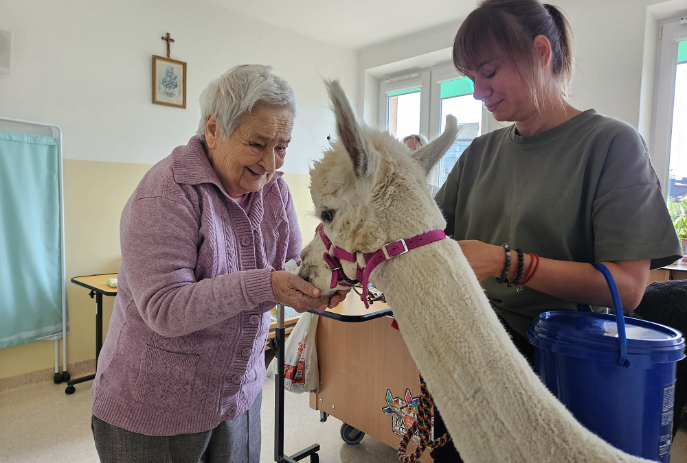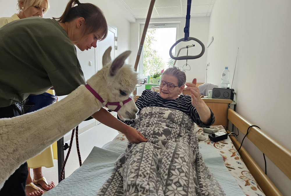 Alpaki w Zakładzie Opiekuńczo-Leczniczym w Przemyślu – terapia pełna radości i wzruszeń.