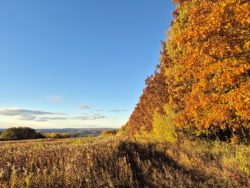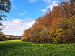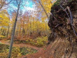 Niebiosa rozjaśniają się promieniami „złotej polskiej jesieni”, które wlewają się w serce Pogórza Przemyskiego. Przyroda, niczym wytrawny malarz, chwyciła za pędzel, by przemienić nasze szlaki w galerię żywych barw: od głębokiej czerwieni, przez płomienną pomarańcz, aż po szlachetne złoto. Każdy krok na tutejszych ścieżkach to melancholijny spacer wśród koncertującej natury – szelest liści pod stopami jest niczym melodia, która koi i uspokaja.