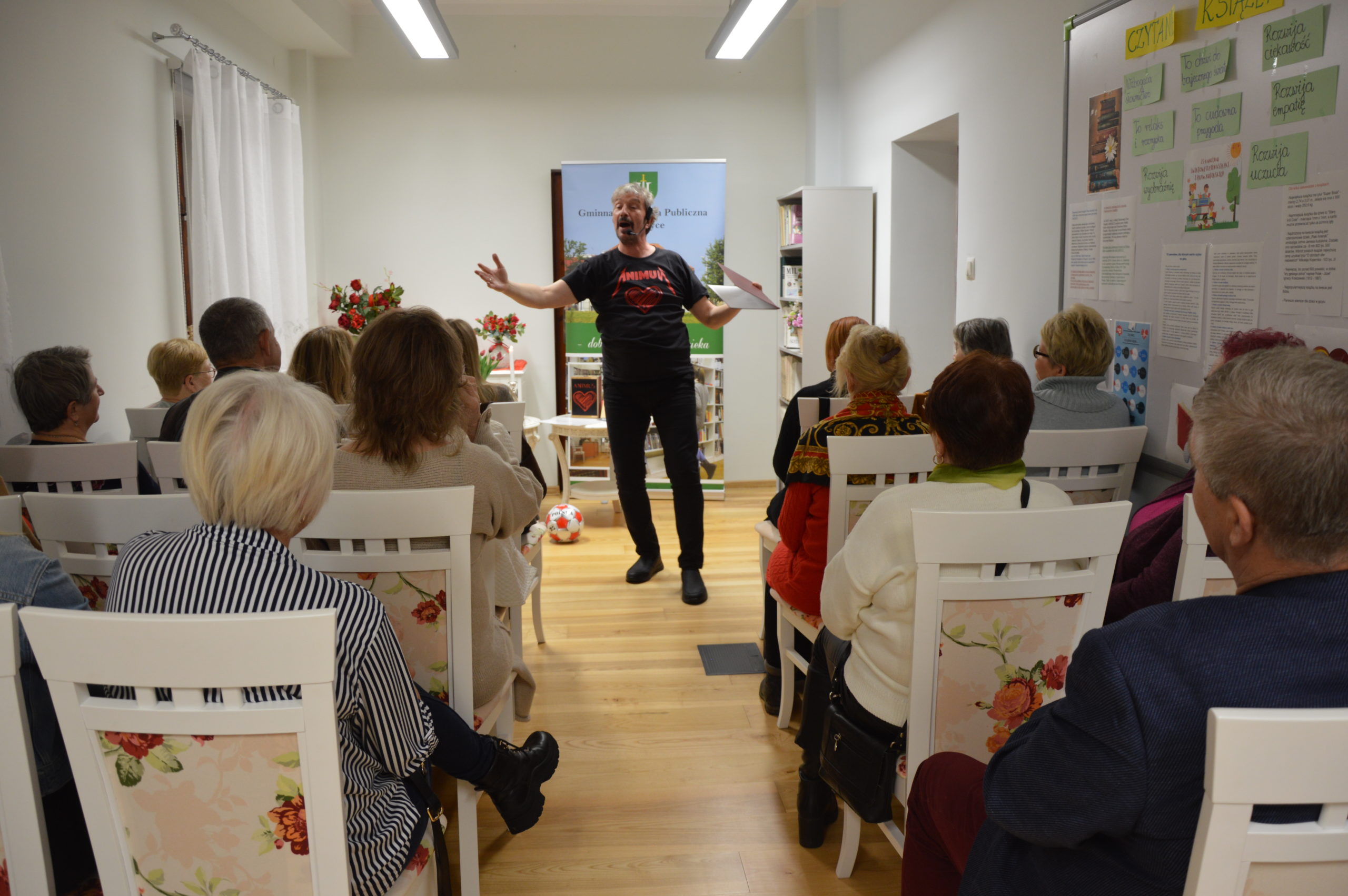 21 listopada 2025 roku w Gminnej Bibliotece Publicznej w Medyce odbył się wyjątkowy wieczór poetycko-aktorski pt. „Animus – Serce moje” sfinansowany przez Gminną Bibliotekę Publiczną w Krasiczynie pełniącą funkcję biblioteki powiatowej. W kameralnej, pełnej ciepła atmosferze mieszkańcy spotkali się z twórczością poetycko-aktorską Piotra Pilarskiego, który zabrał publiczność w emocjonalną podróż poprzez słowo, gest i muzykę. Artysta zaprezentował wiersze pełne wrażliwości, refleksji i życiowej mądrości, a jego interpretacje poruszały i skłaniały do zatrzymania się nad tym, co w codziennym życiu najważniejsze. Recital wzbudził wiele wzruszeń, a niektóre fragmenty publiczność nagrodziła spontanicznymi brawami. Po występie uczestnicy mieli okazję porozmawiać z artystą, zakupić tomik poezji oraz otrzymać osobistą dedykację. Spotkanie przebiegło w serdecznej atmosferze i stało się pięknym wydarzeniem artystycznym, które na długo pozostanie w pamięci uczestników. Dziękujemy wszystkim mieszkańcom za tak liczne przybycie i wspólne przeżywanie tego wyjątkowego wieczoru.