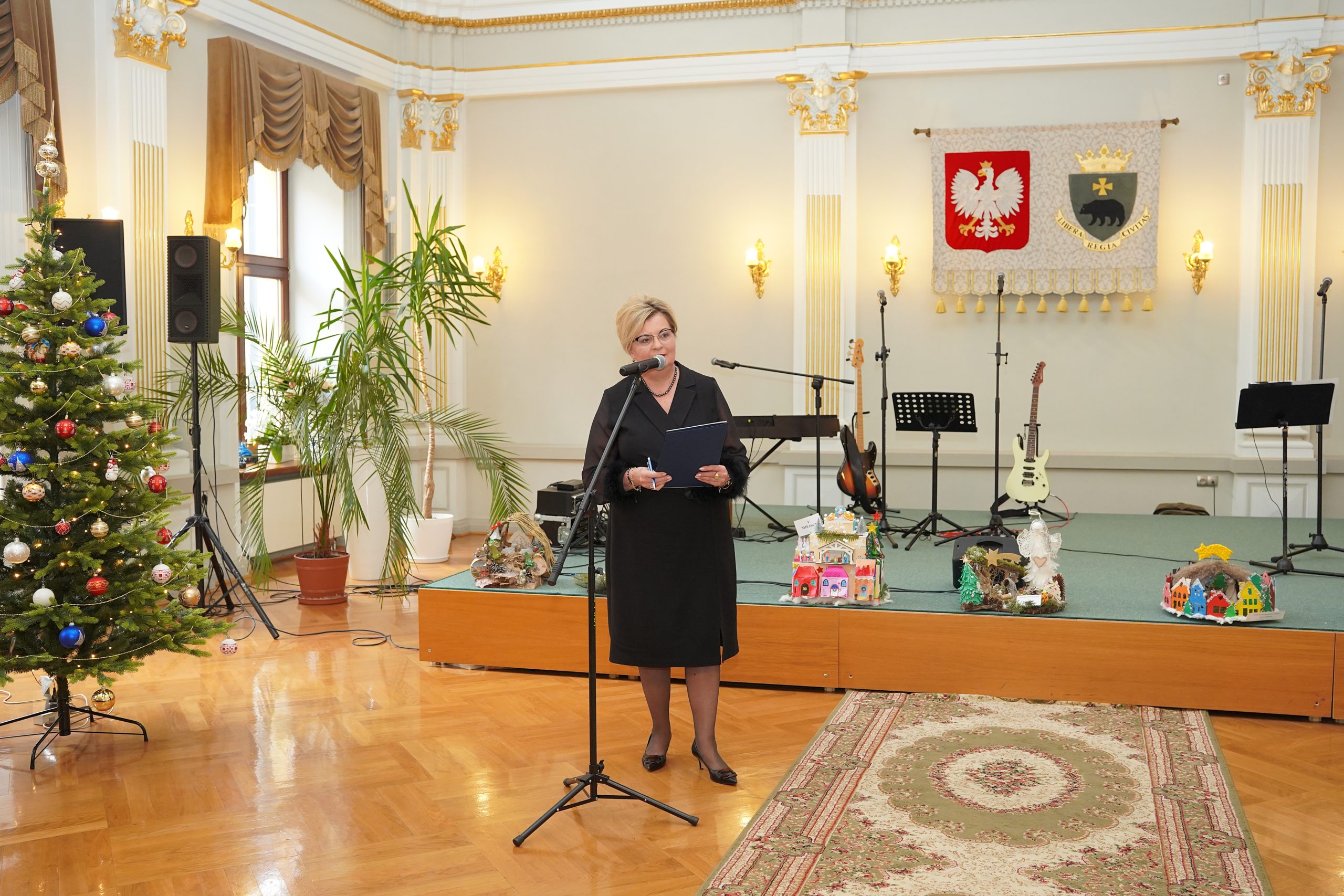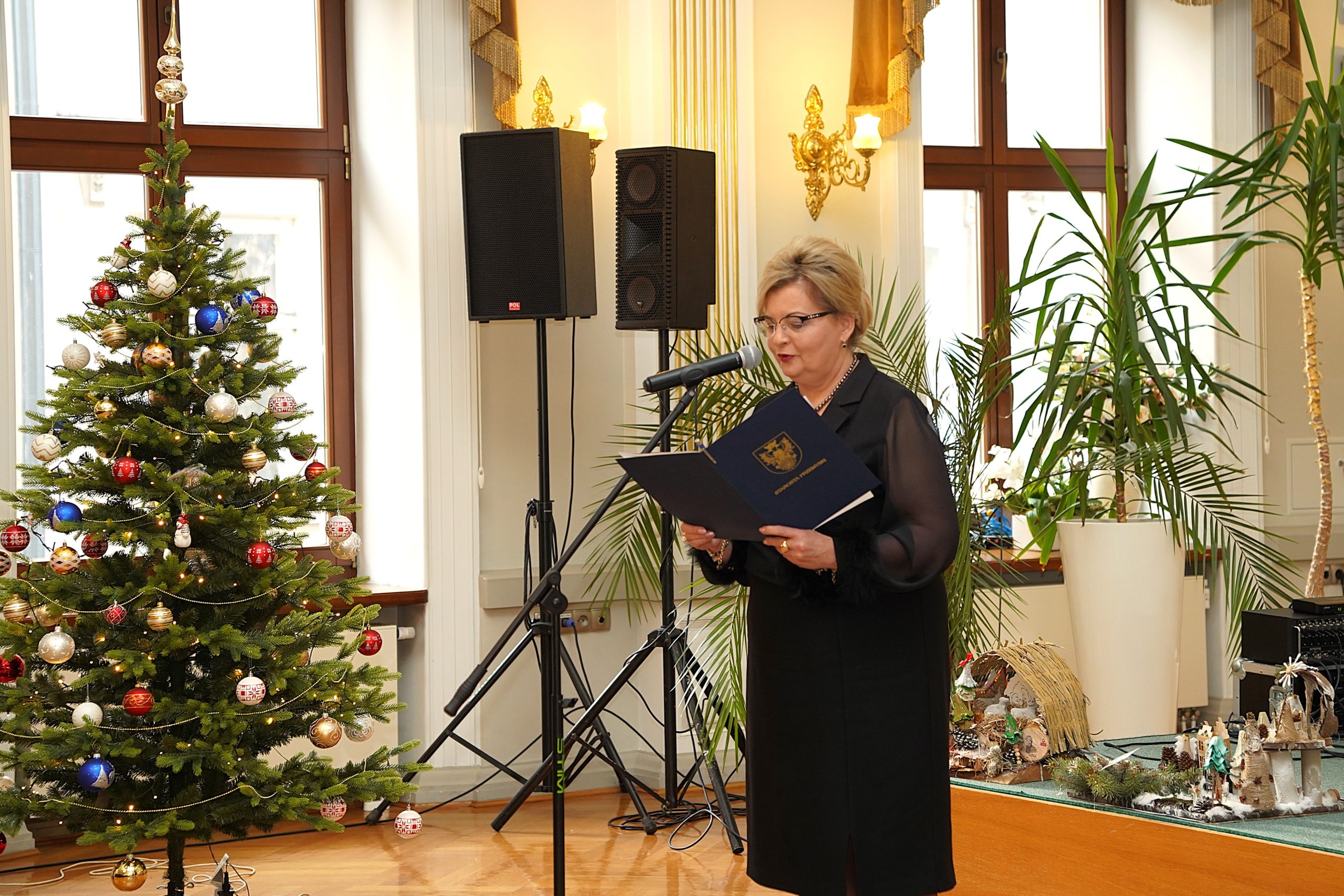 W swoim wystąpieniu Pani Starosta podkreśliła wyjątkowy, świąteczny charakter spotkania, nawiązując do wartości płynących z tajemnicy Narodzenia Pańskiego – miłości, pokoju, wzajemnego szacunku i otwartości na drugiego człowieka. Zaznaczyła, że wspólne przełamywanie się opłatkiem jest symbolem jedności, pojednania oraz troski o dobro wspólne, a także wyrazem wdzięczności za działania podejmowane w ciągu mijającego roku.
