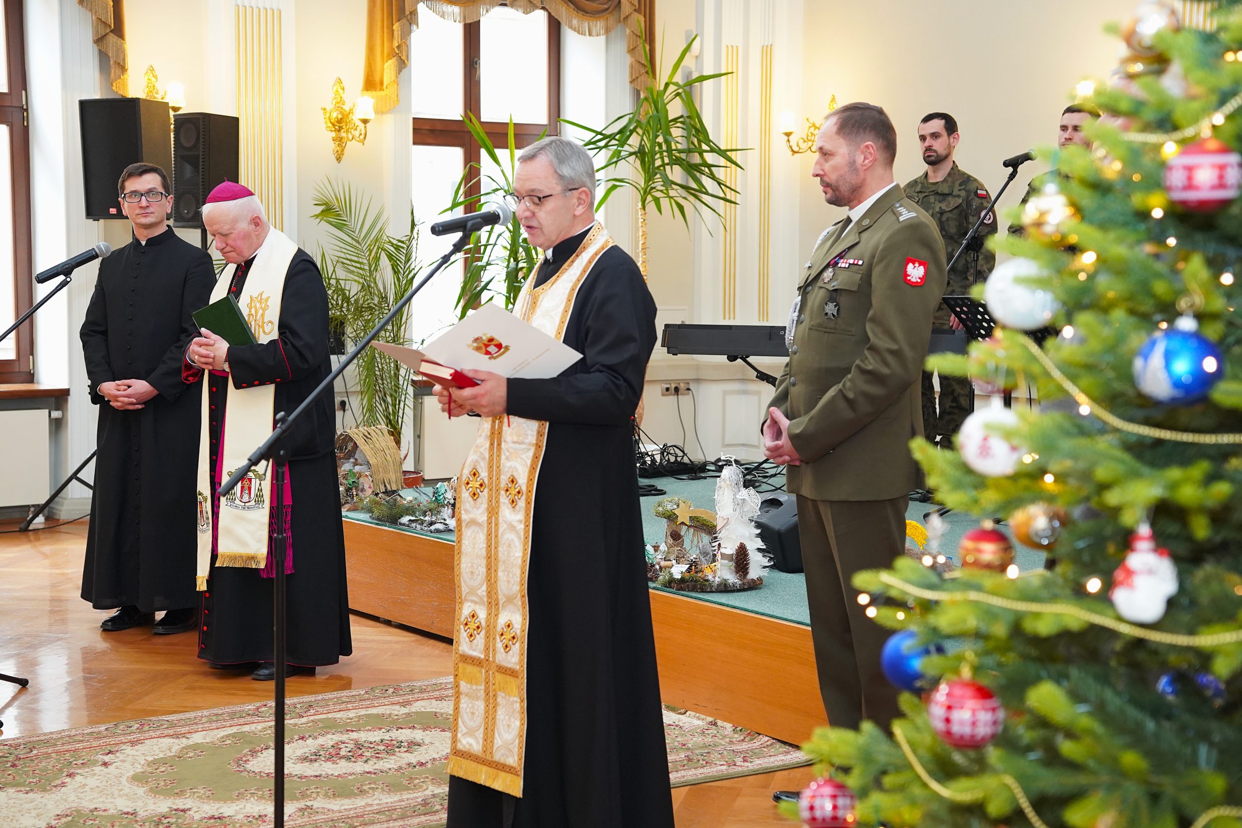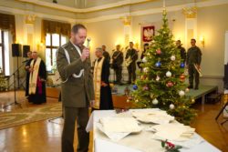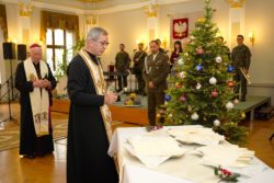 Szczególnie podniosłym momentem uroczystości była modlitwa ekumeniczna, którą odmówili duchowni trzech wyznań: Jego Ekscelencja Arcybiskup Adam Szal – Metropolita Przemyski, Jego Ekscelencja Arcybiskup Eugeniusz Popowicz – Metropolita Przemysko – Warszawski oraz Ksiądz prot. płk Jerzy Mokrauz – Kapelan Prawosławnego Ordynariatu Wojska Polskiego. Następnie duchowni pobłogosławili opłatki, którymi wszyscy zgromadzeni dzielili się, składając sobie serdeczne, świąteczne życzenia.