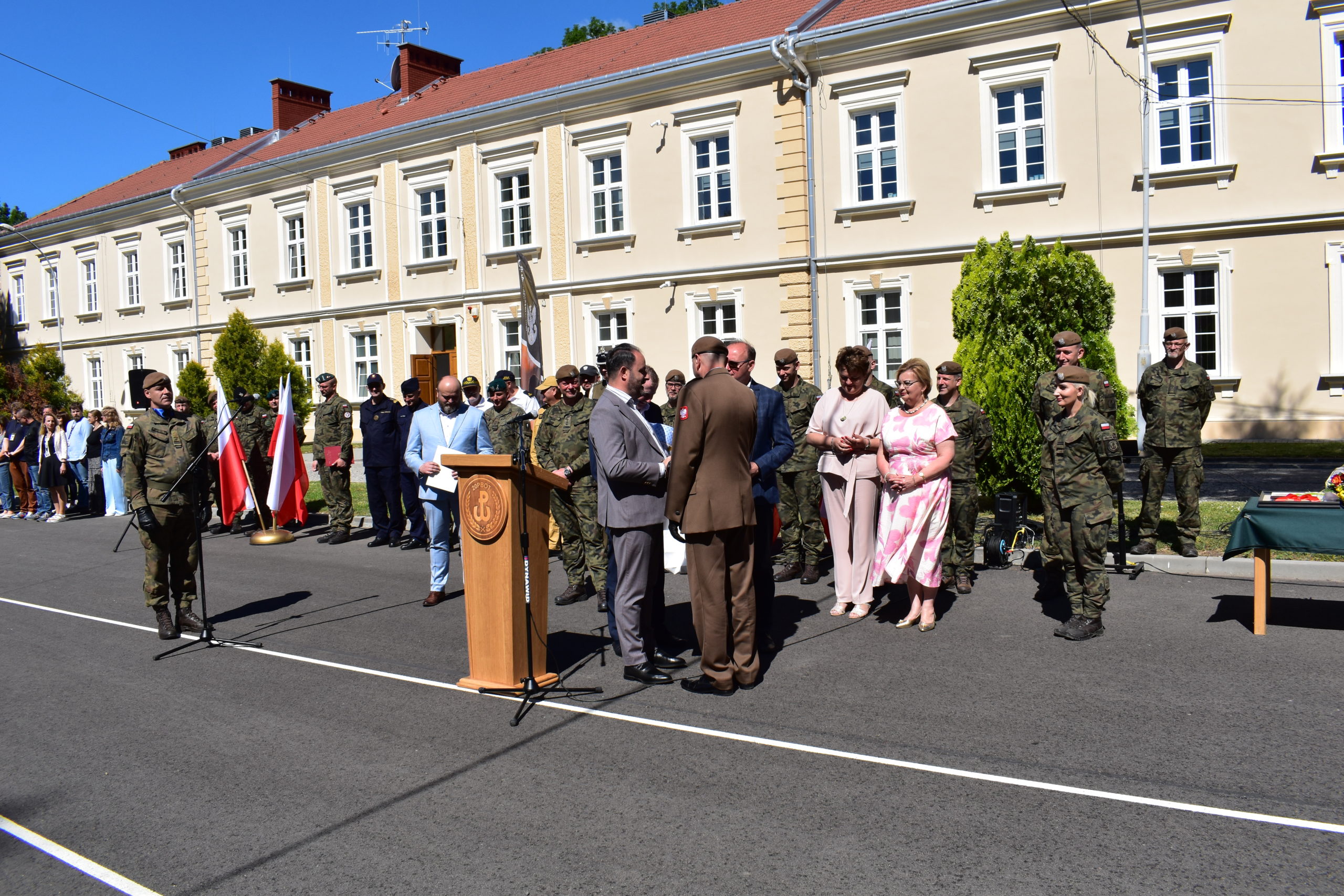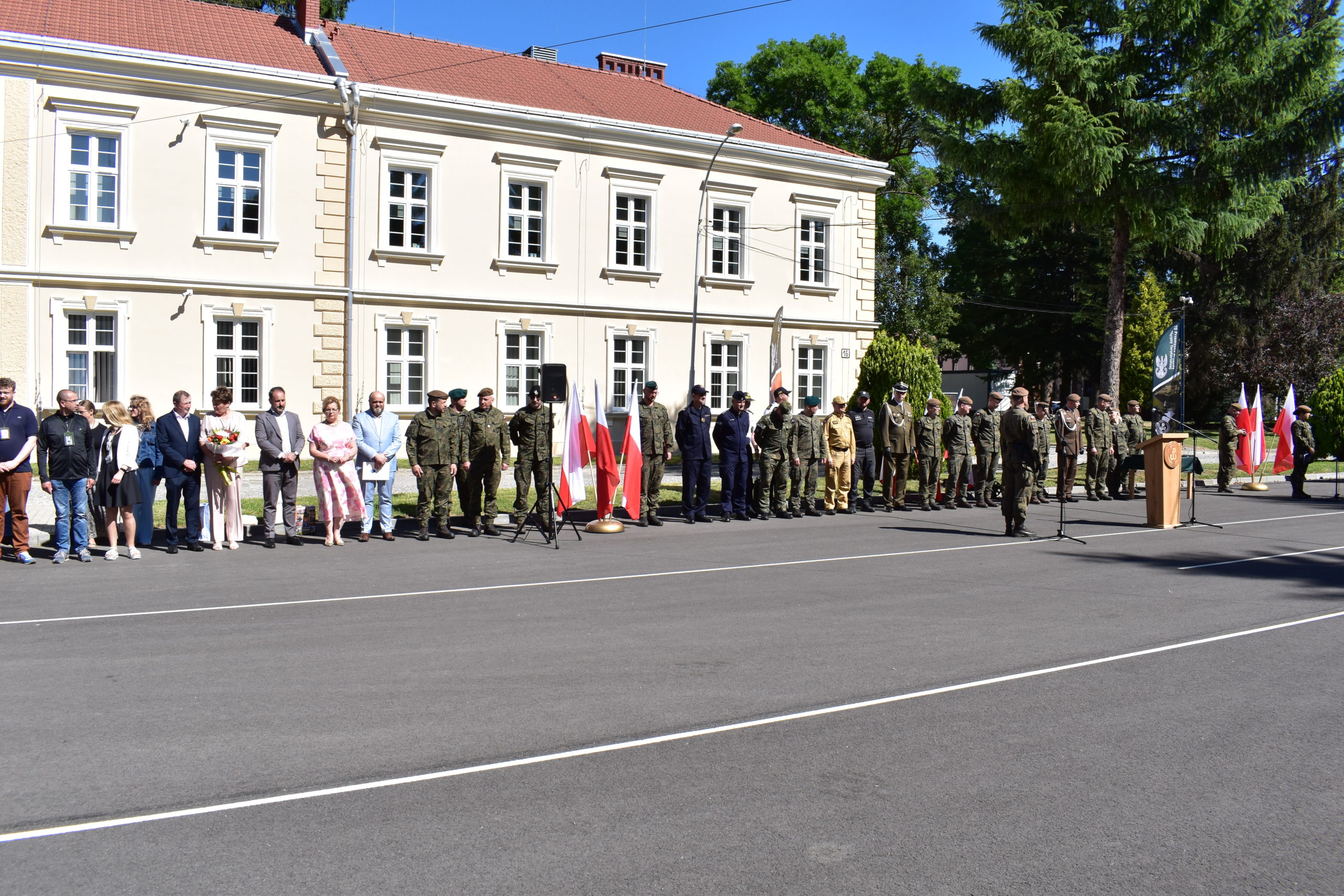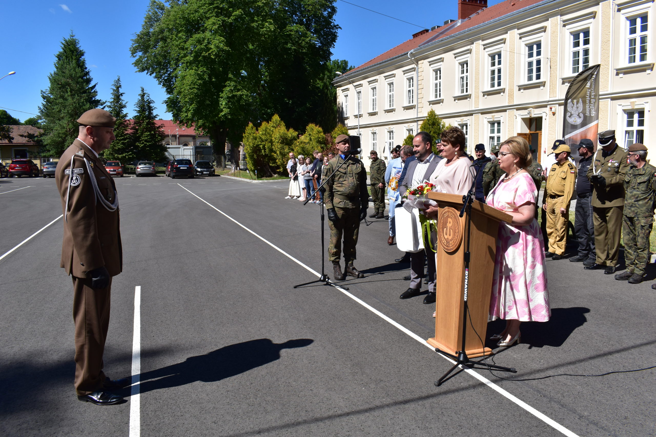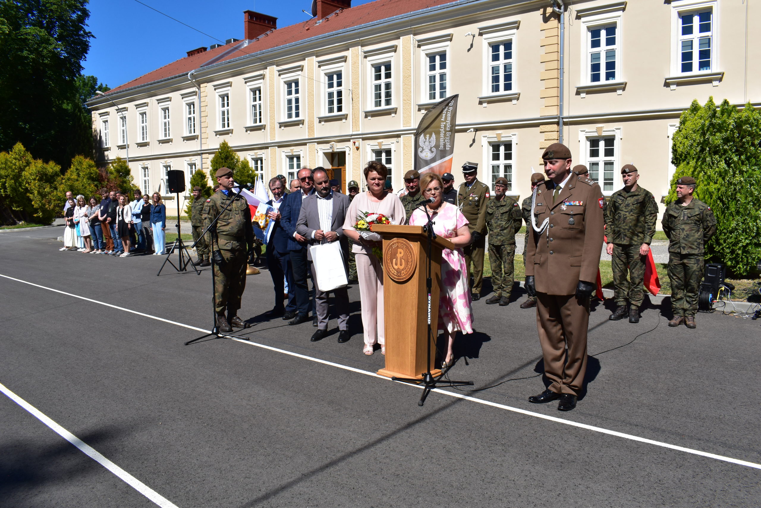 Starosta Przemyski Pani Bożena Ryczan w swoim wystąpieniu podziękowała ppłk. Guźmiedze za wzorową współpracę z Powiatem Przemyskim, podkreślając jego osobisty wkład w bezpieczeństwo i rozwój regionu. „Pana zaangażowanie i profesjonalizm były dla nas nieocenione. Dziękujemy za lata wspólnych działań na rzecz obronności i bezpieczeństwa mieszkańców Powiatu Przemyskiego” – mówiła Pani Starosta.
