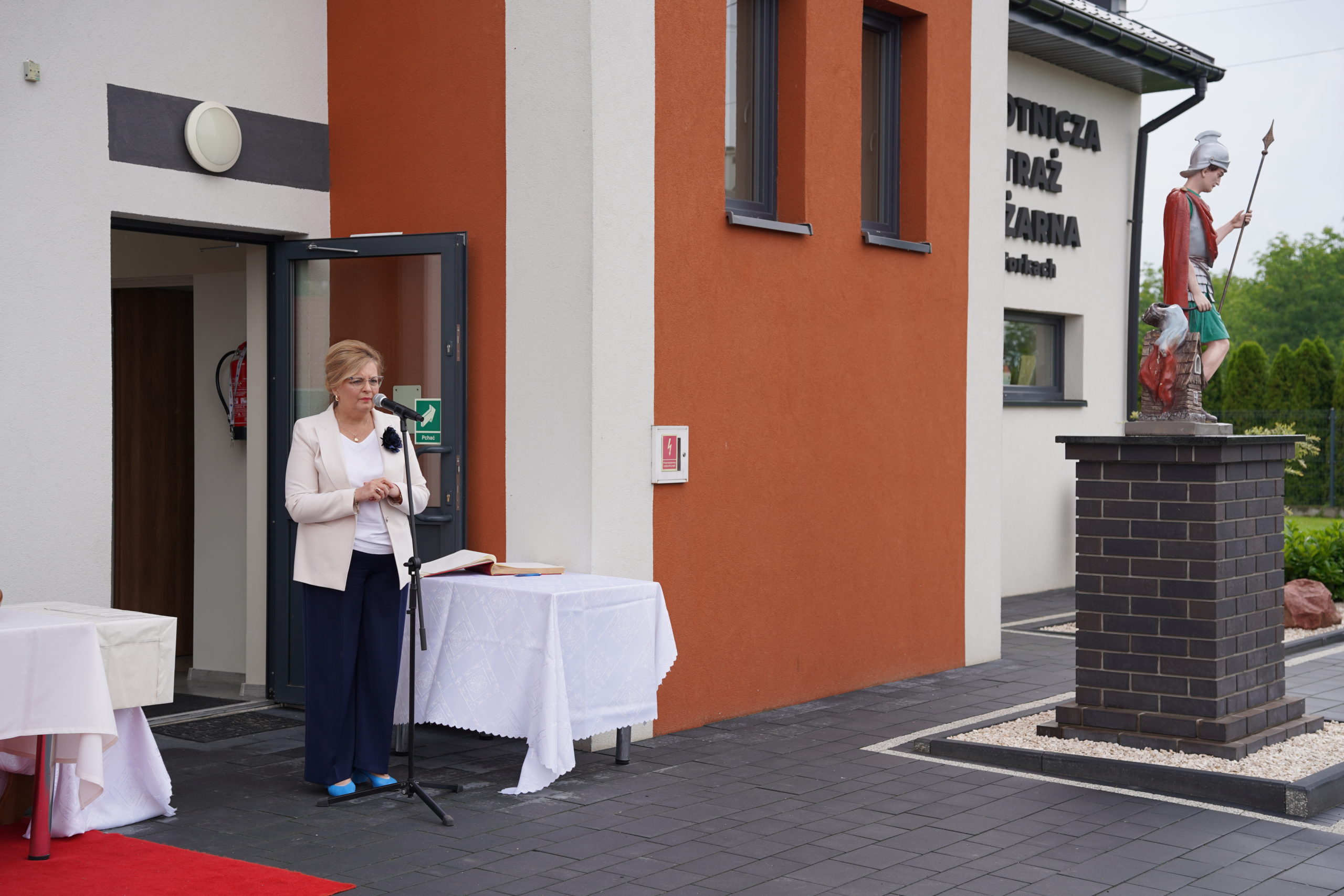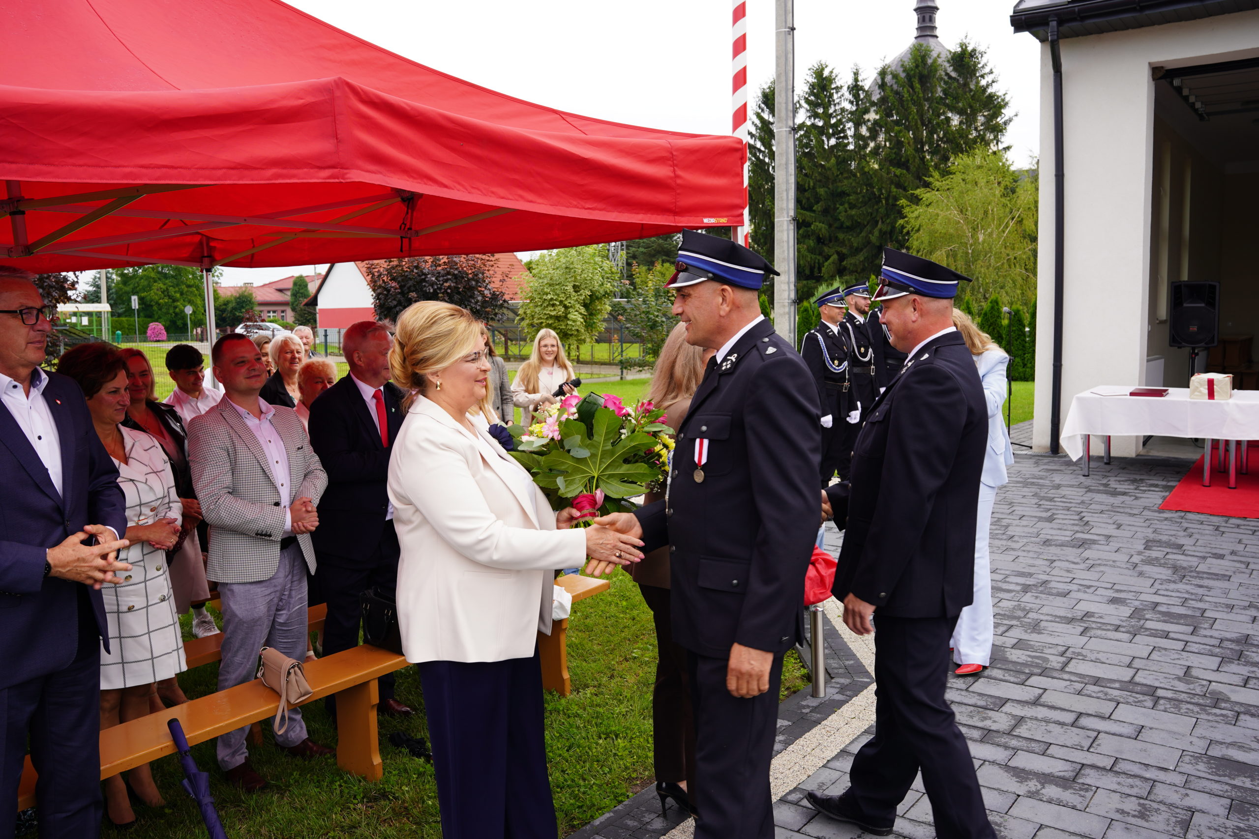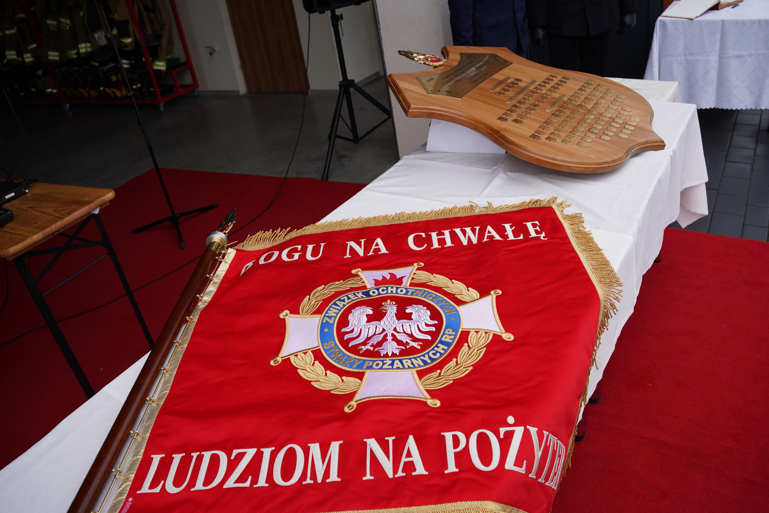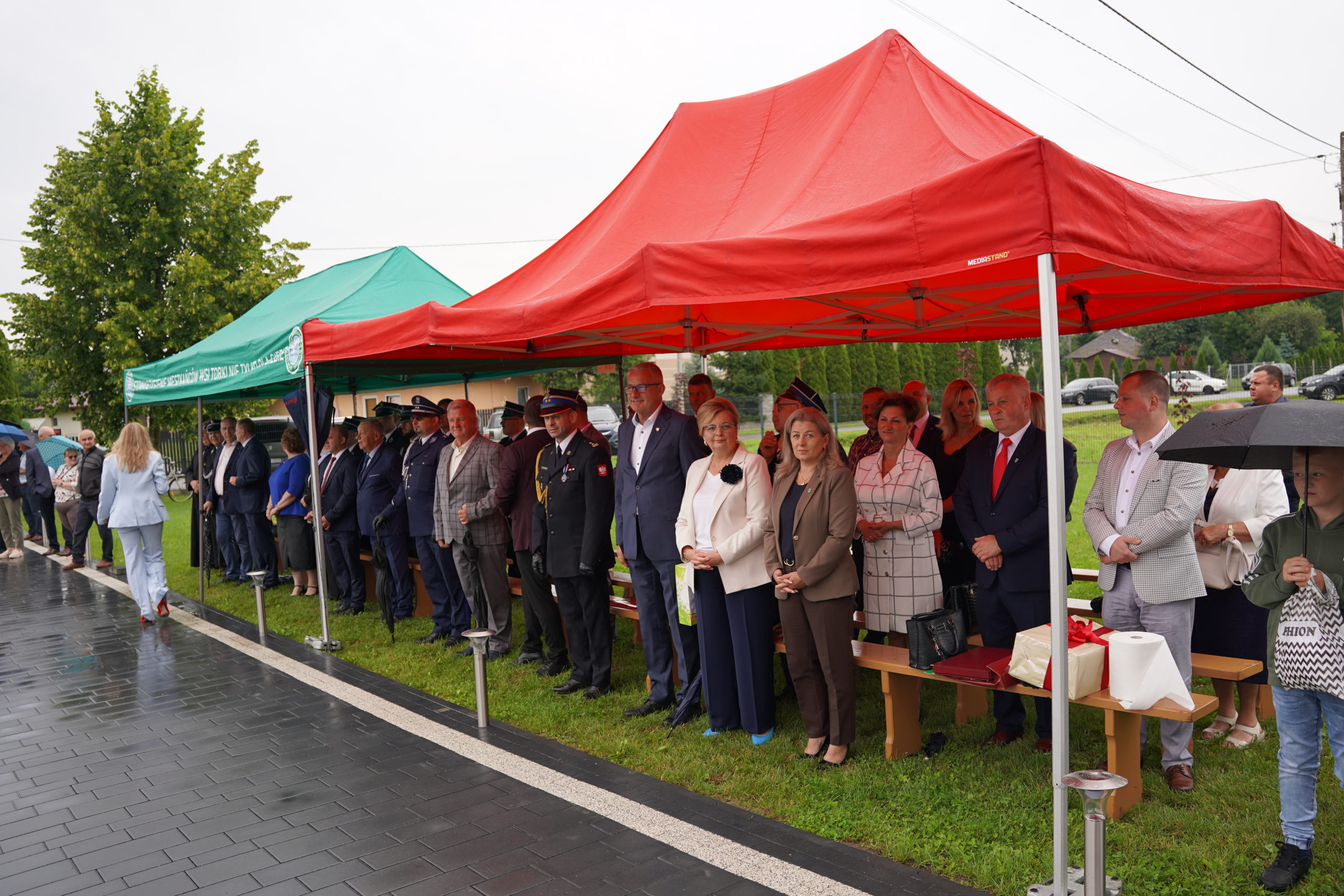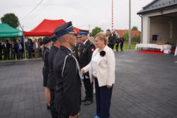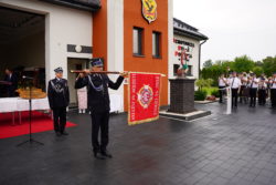 Następnie uczestnicy udali się na plac przy remizie OSP, gdzie kontynuowano oficjalną część uroczystości. Wśród zgromadzonych gości znaleźli się przedstawiciele władz samorządowych, służb mundurowych, duchowieństwa. Po oficjalnym przywitaniu, odbył się apel strażacki, podczas którego dokonano aktu nadania sztandaru jednostce. Symbolicznego i wzruszającego momentu dopełniło wbicie gwoździ do tablicy pamiątkowej, upamiętniającej fundatorów i osoby zasłużone dla jednostki.