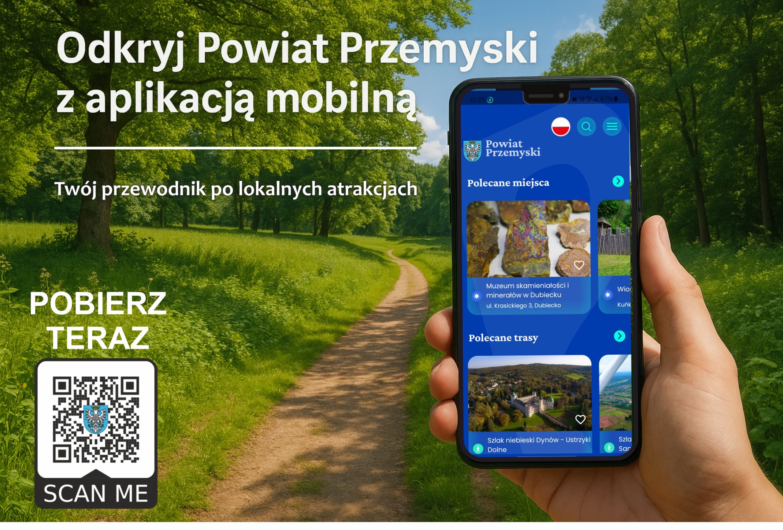 Nie wiesz, od czego zacząć? Mamy dla Ciebie idealnego towarzysza podróży. Pobierz naszą darmową aplikację mobilną „Powiat Przemyski”!