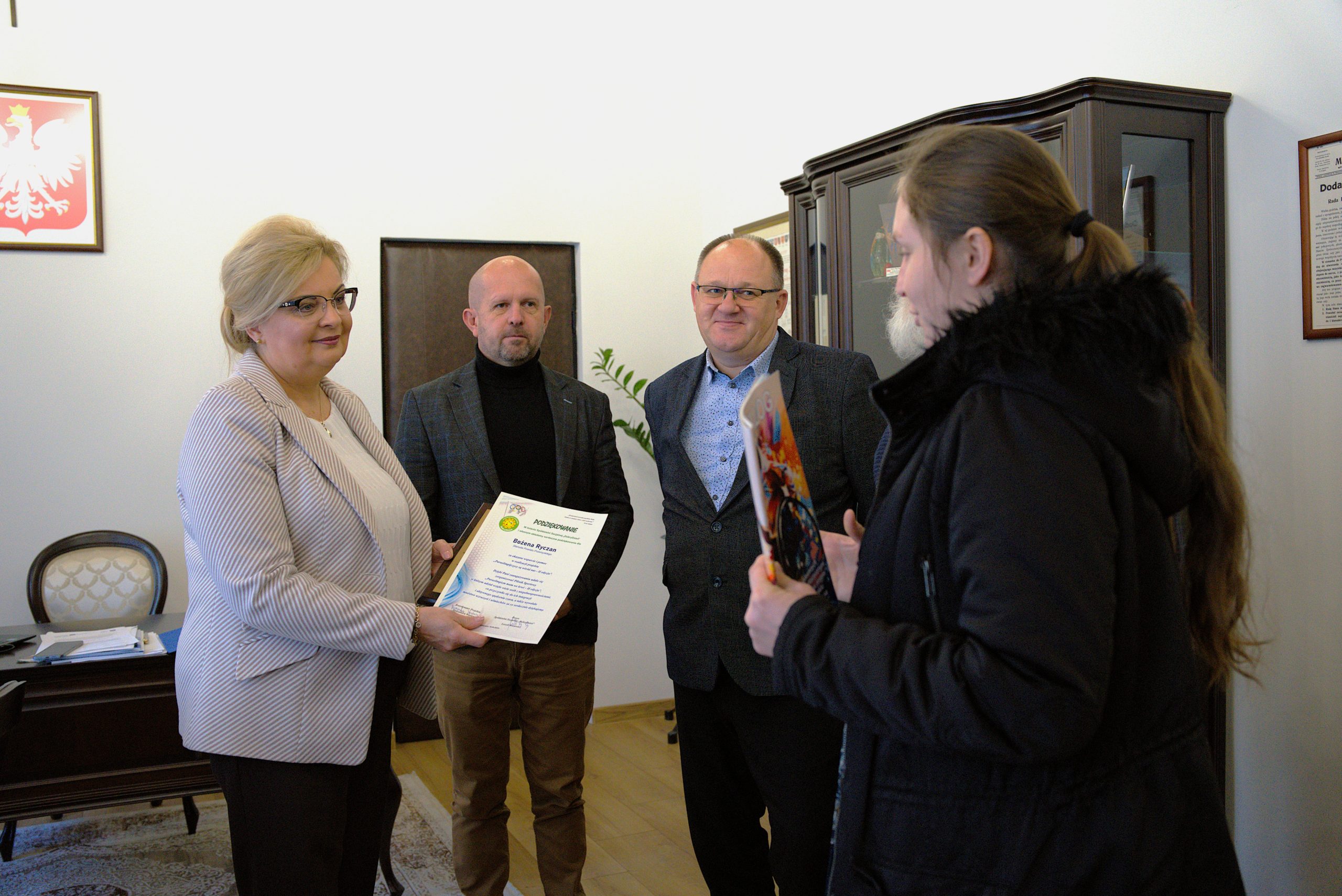 W dniu 24 listopada 2025 r. w gabinecie Pani Bożeny Ryczan – Starosty Przemyskiego – odbyło się spotkanie z przedstawicielami Spółdzielni Socjalnej „DobryDzień”. Starostę odwiedzili Prezes Spółdzielni Pan Leszek Wasiewicz oraz Koordynator Projektu Pani Aleksandra Wasiewicz, którzy złożyli na jej ręce serdeczne podziękowania za okazane wsparcie i pomoc w realizacji projektu „Paraolimpijczycy wśród nas – II edycja”.