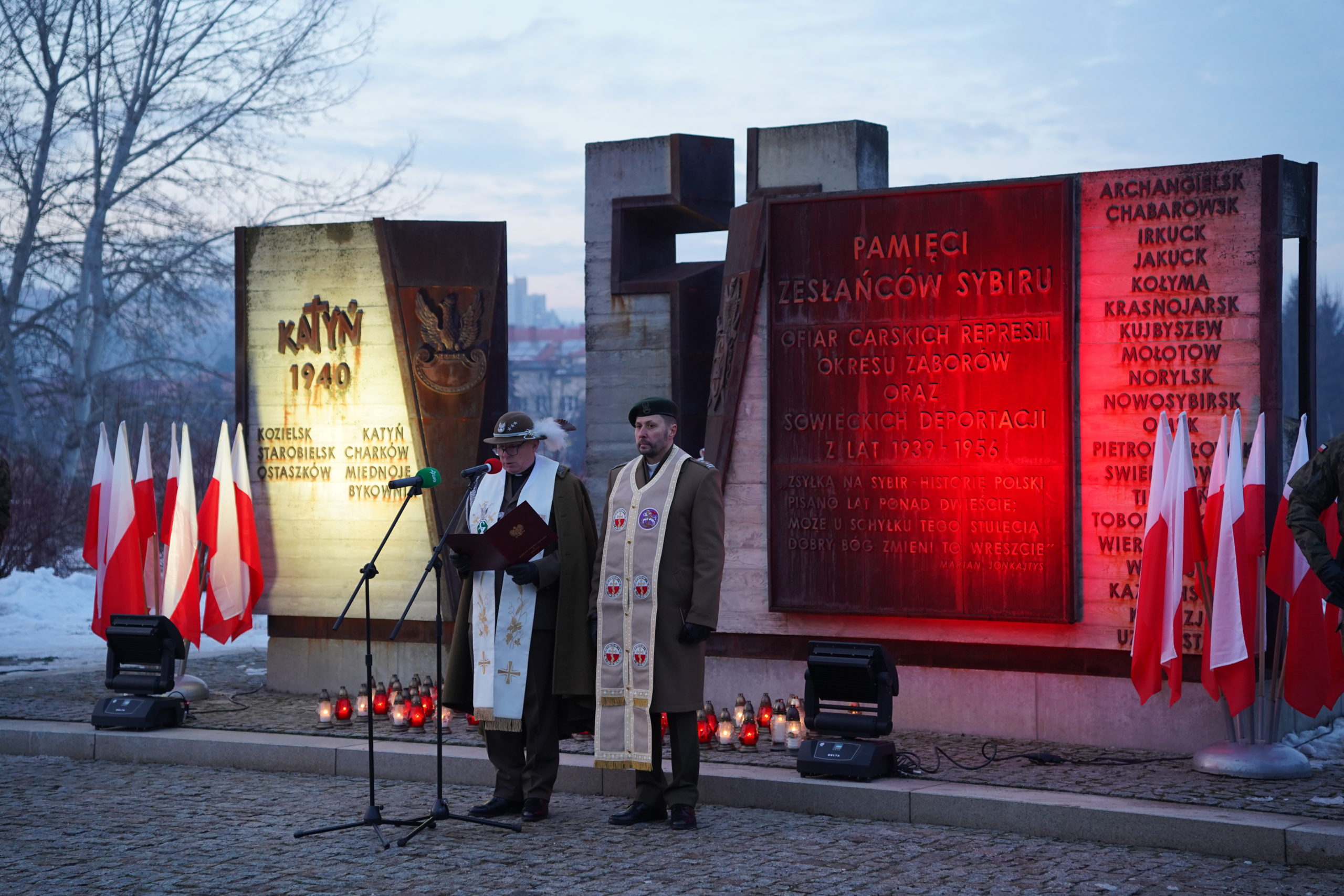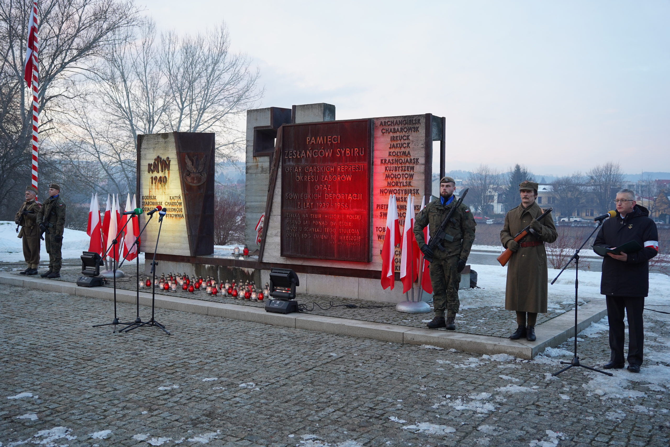 Uroczystości rozpoczęły się Mszą Świętą w kościele pw. Świętej Trójcy. Następnie uczestnicy zapalili znicze przy tablicy poświęconej Sybirakom, umieszczonej na murze świątyni. W skupieniu i ciszy, przy blasku płomieni, oddano cześć tym, których los rzucił w mroźne przestrzenie Syberii.